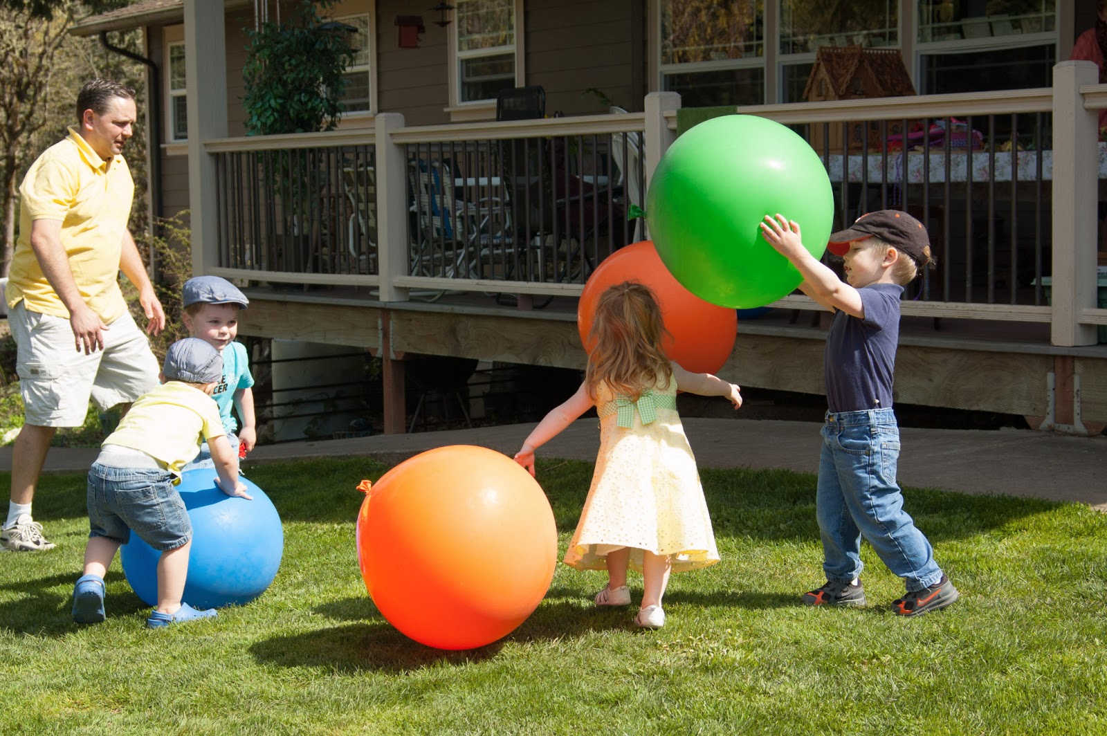 | My Aunt and Uncle sell supplies to car dealerships. So they just happen to have the extraordinarily large balloons in their storage building. Lucky kids. |